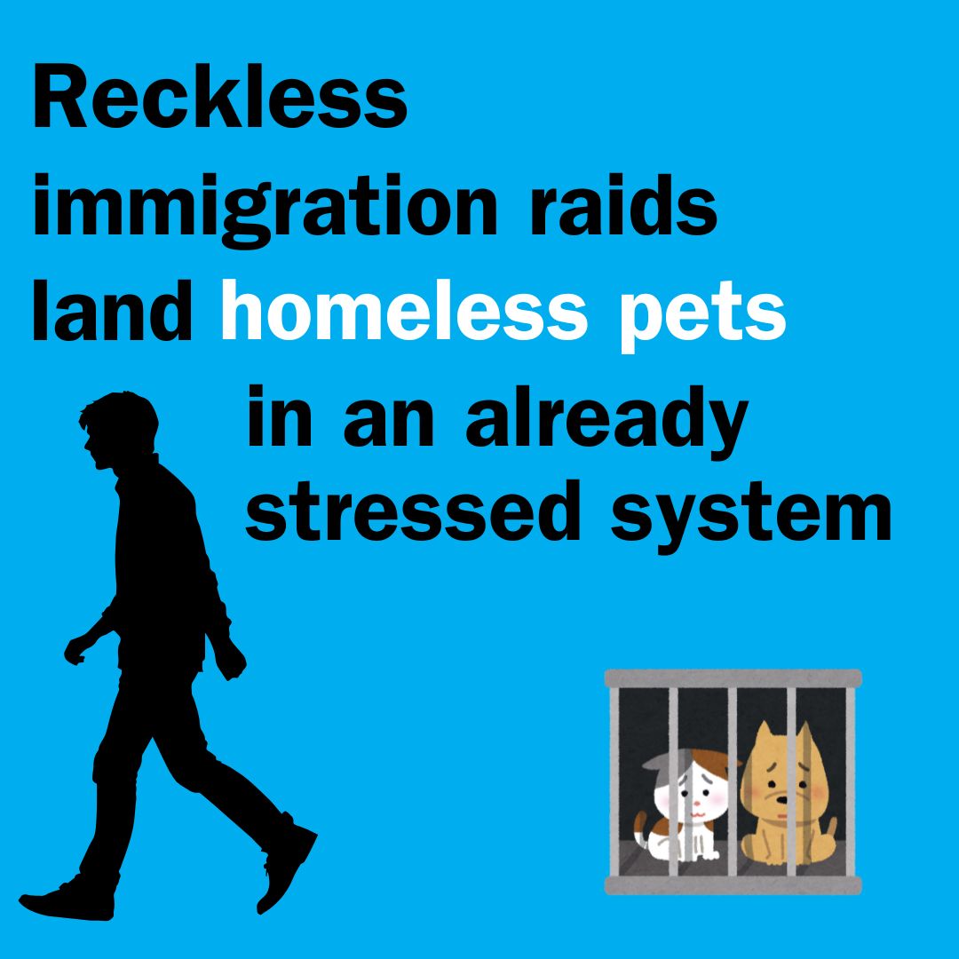 The arresting and treatment of undocumented people without criminal backgrounds is a national disgrace. Furthermore, pets being separated from their families because of the Administration’s actions could not have come at a worse time.